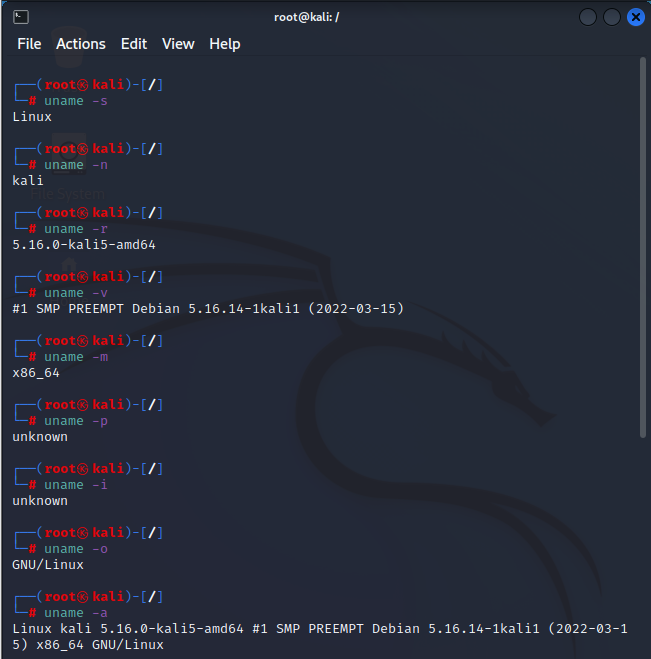 s 옵션은 커널 이름을 출력합니다
