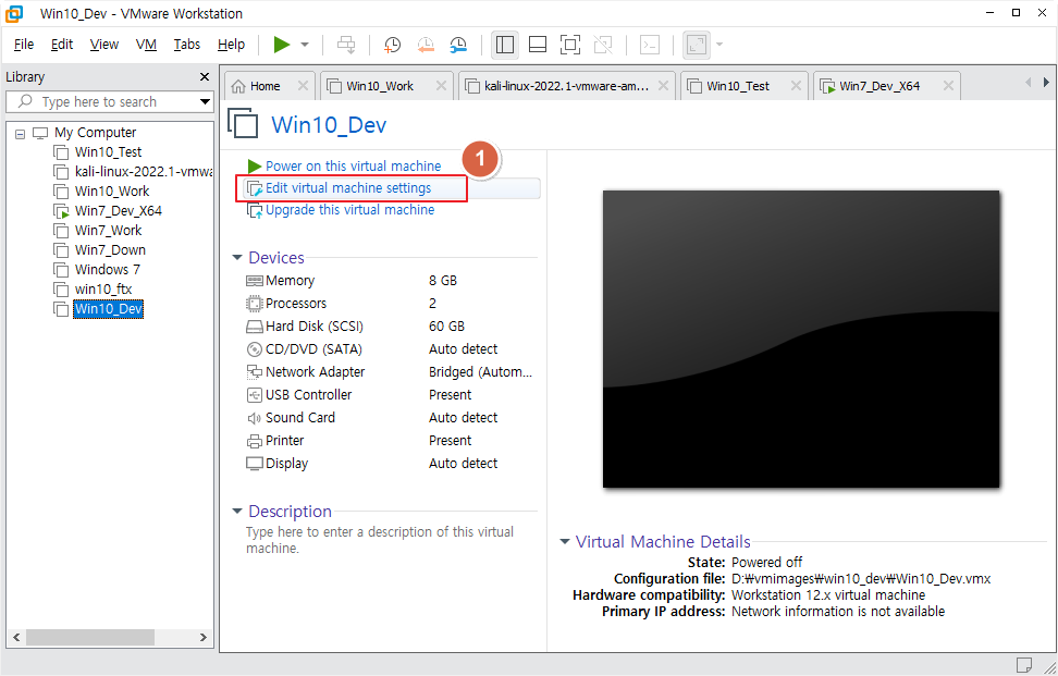 복제하려는 가상머신을 선택하고, 그림과 같이 'Edit virtual machin settings' 메뉴를 선택합니다.
