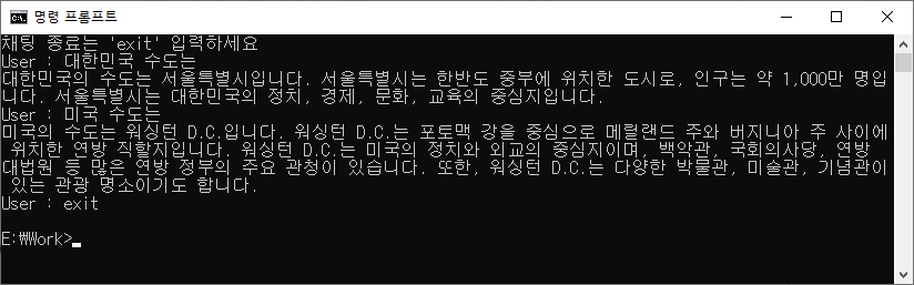 - 채팅 종료는 exit를 입력하면됩니다.