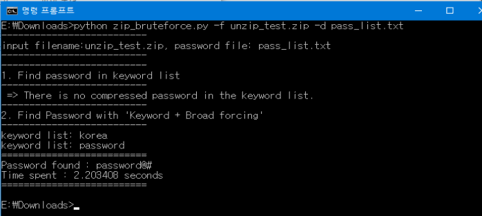 # ex). python test.py -f Test.zip -d dictionary.txt