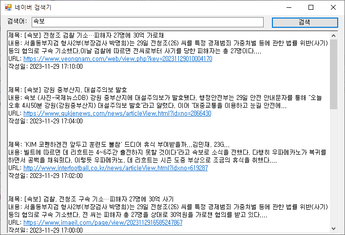 c# 윈폼을 이용하여 네이버 뉴스를 검색하는 코드를 작성해 볼께요.