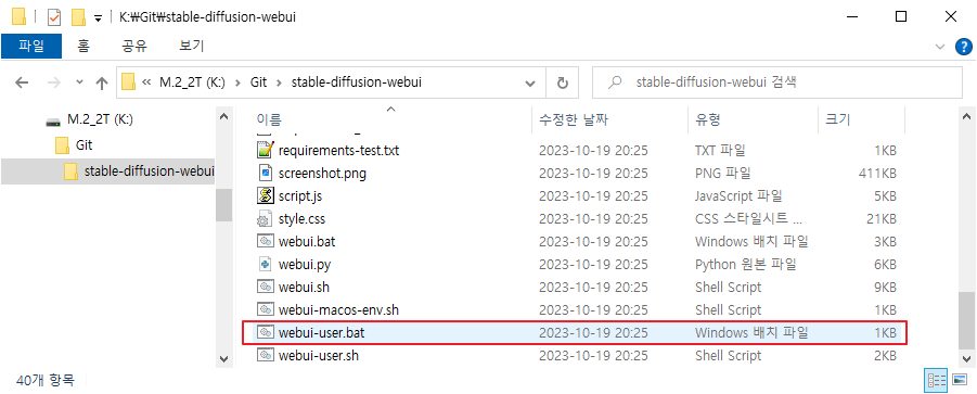 stable-diffusion-webui 폴더의 webui-user.bat 실행
