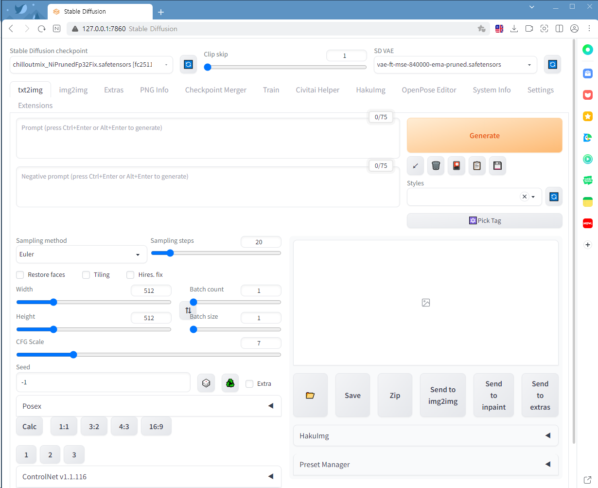 http://127.0.0.1:7860/ 브라우저에서 접속