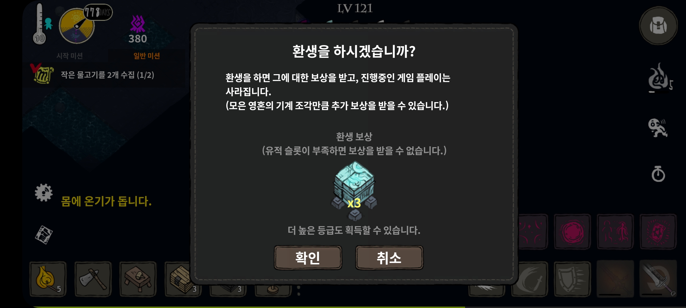 경로: 대포 → 창공의 등대 → 환생 제단 업그레이드(신수의 심장/뇌) → 환생