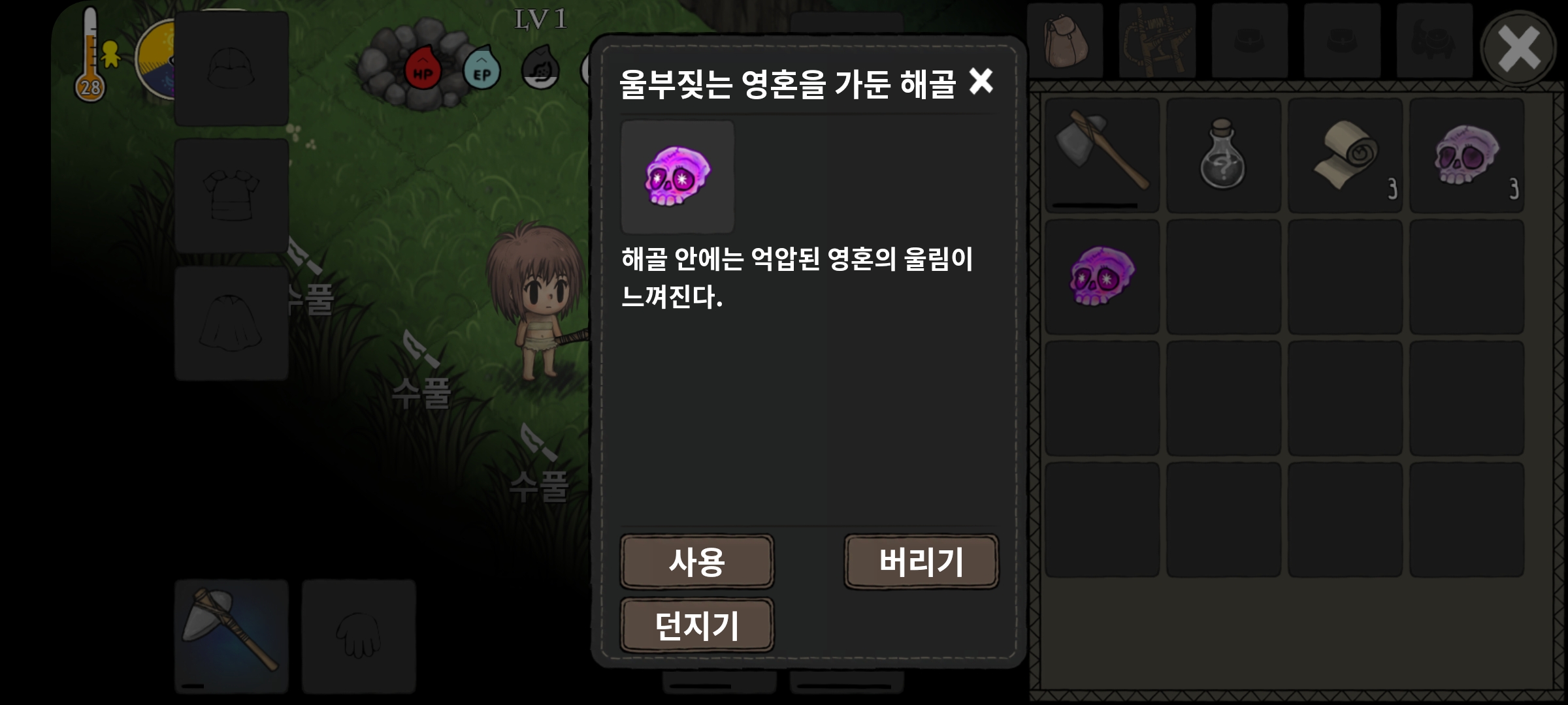 때로는 아이템 형태의 '영혼을 가둔 해골'(해골), '울부짖는 영혼을 가둔 해골'(해골 전사) 구슬이 떨어지기도 합니다