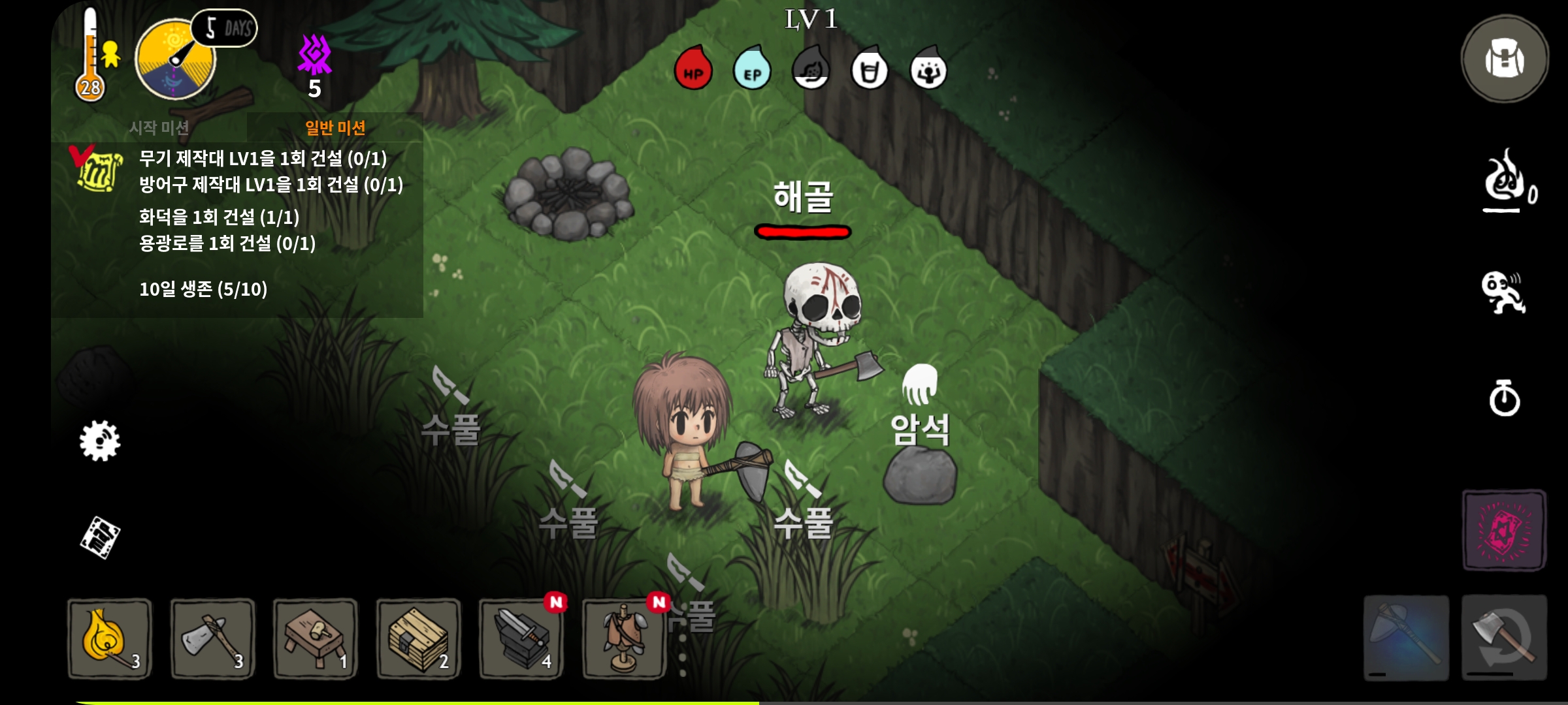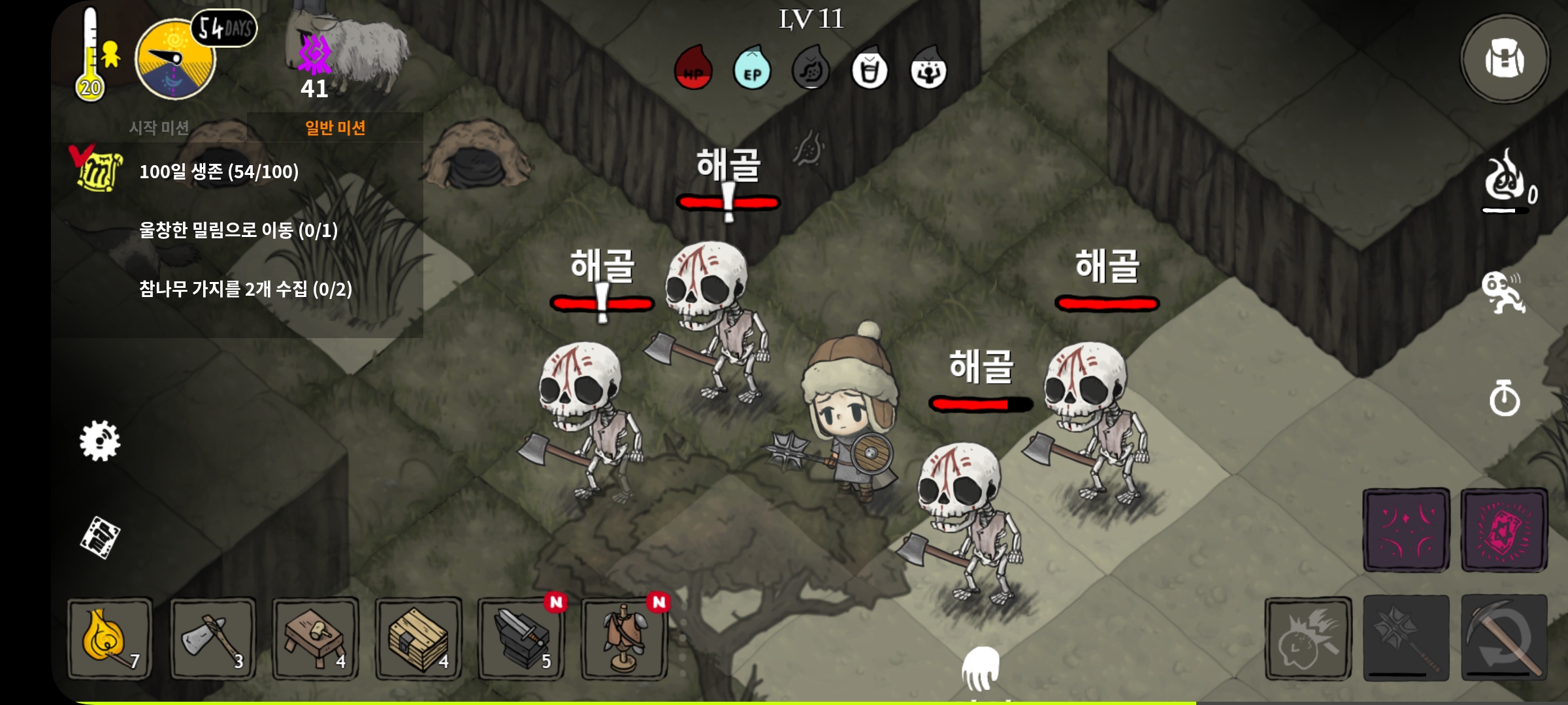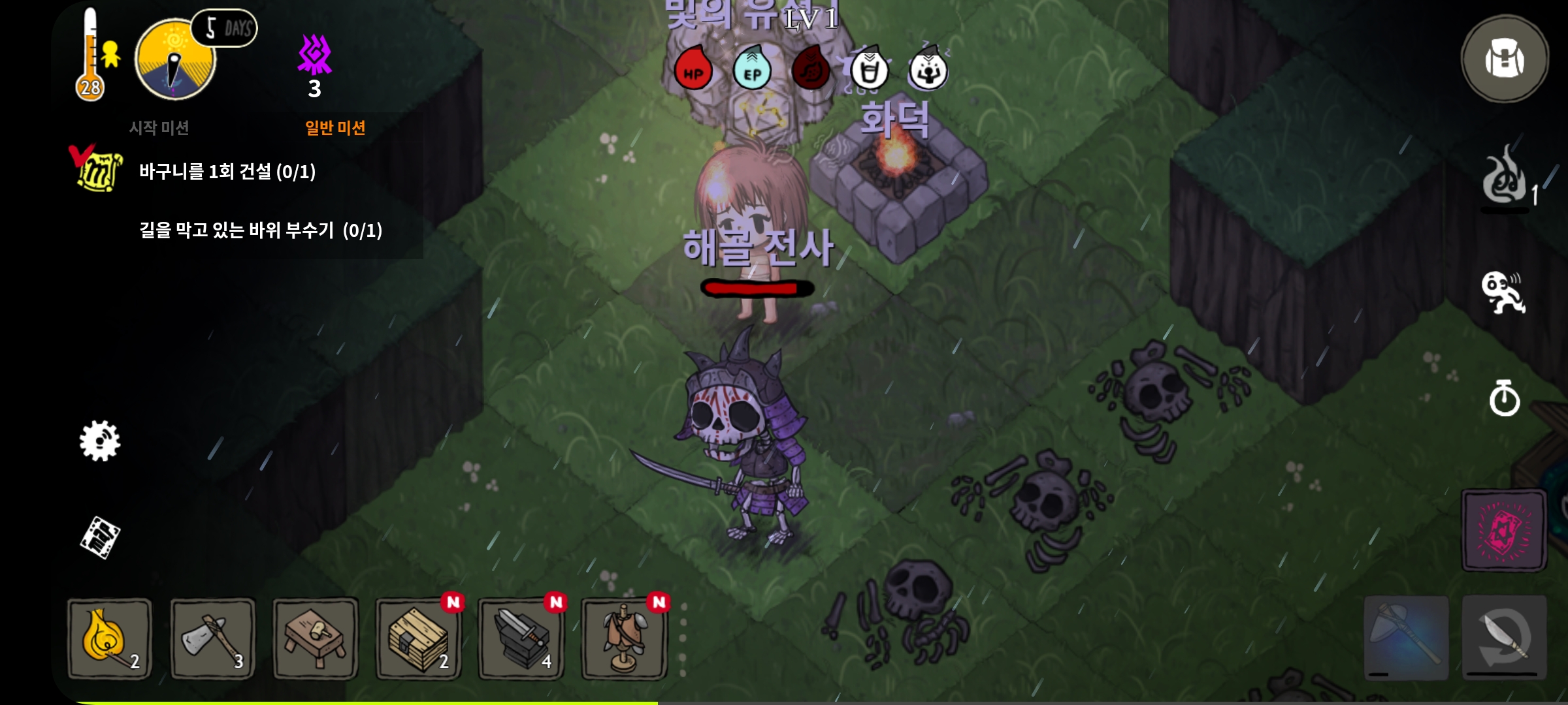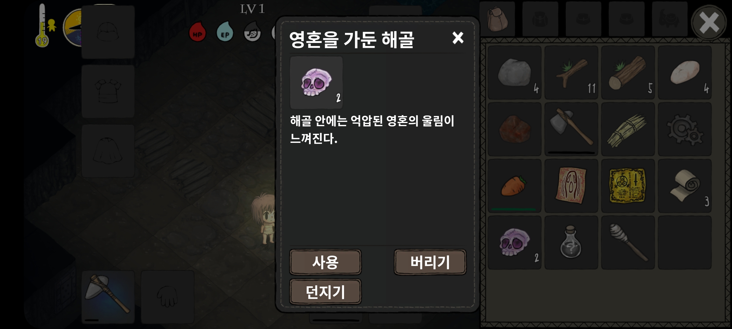 - 던전에서는 던전 구조에 따라 소화한 해골이 도움이 안될 경우가 많음.