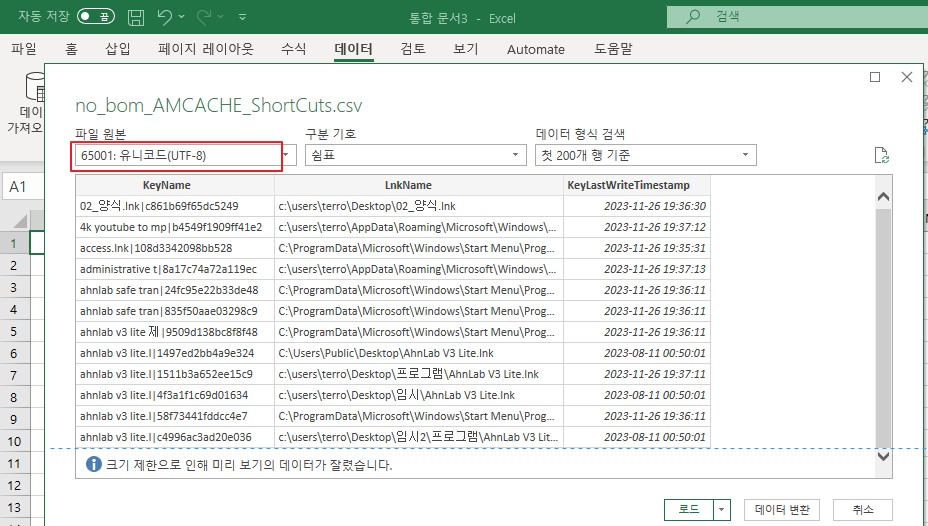 1. 엑셀에서 파일 열기 시 인코딩 지정