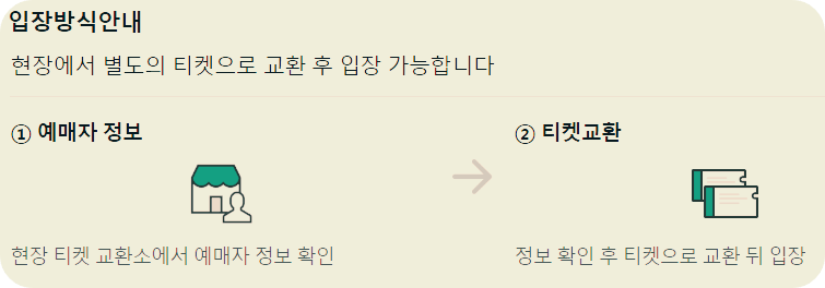 ※ 현장에서 별도의 티켓으로 교환 후 입장 가능합니다