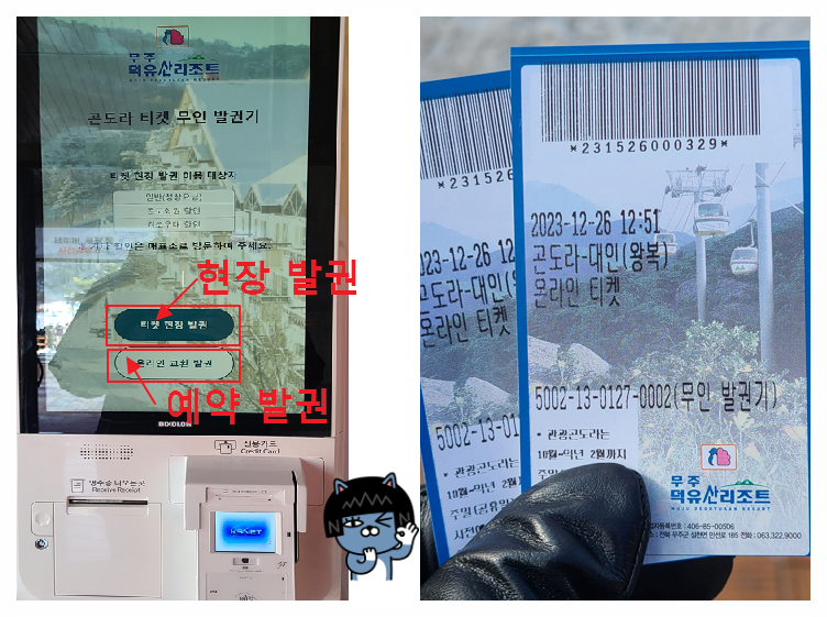 곤도라 이용방법은 예약 하시고, 현장에서 무인 발권기를 이용하여 발권하시고, 곤도라 타는 줄에 서시면 됩니다.