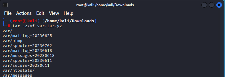 tar -xvf var.tar