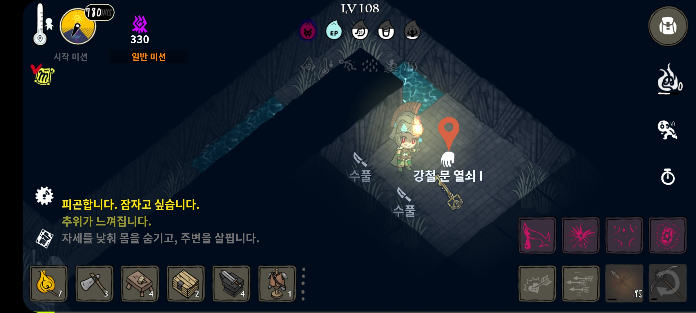 보물상자나 다른 방으로 이동시 열쇠가 필요합니다.