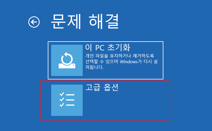 3. 문제해결 (Troubleshoot) > 고급 옵션(Advanced options) 메뉴 선택