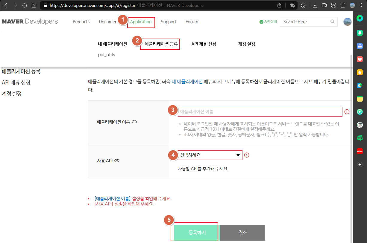 ②. 애플리케이션 등록 (Application 메뉴 선택 > 애플리케이션 등록)