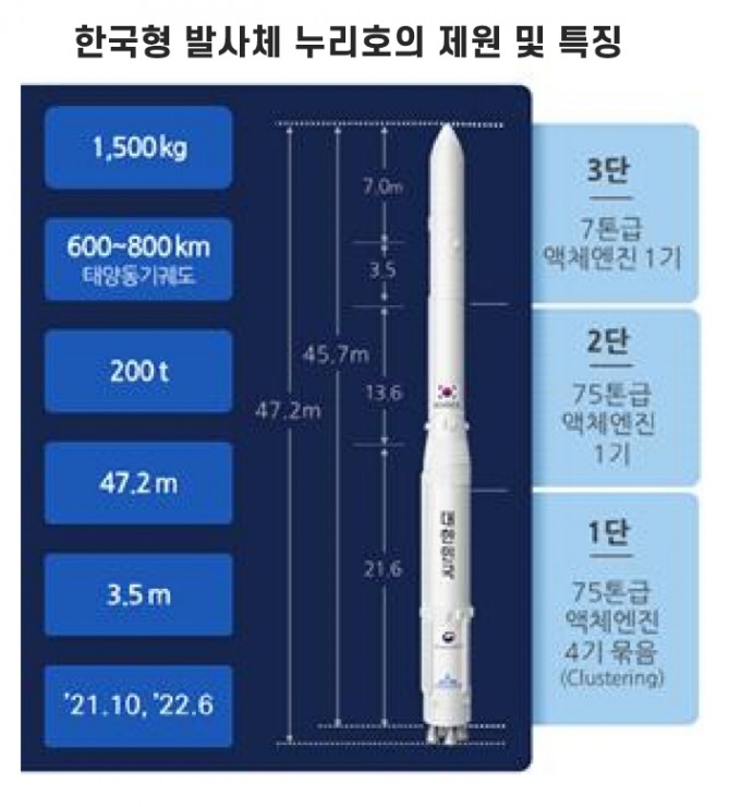 - 한국의 독자적인 기술로 개발된 두 번째 우주 발사체.