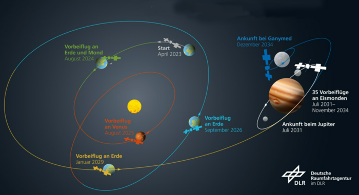 - 유럽우주국(ESA)의 JUICE 임무는 2023년 4월 14일에 발사되었으며, 2031년에 목성 궤도에 도착할 예정입니다. JUICE는 목성의 얼음 위성인 유로파, 가니메데, 칼리스토를 집중 탐사하며, 특히 가니메데 (2035년) 를 심층 연구할 계획입니다.