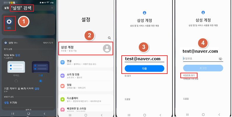 삼성 계정을 찾고 비밀번호를 재설정하려면 아래 단계를 따라 주세요.