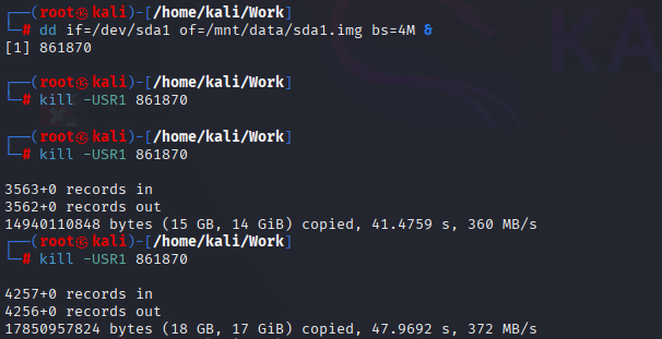 구버전에서는 kill -USR1 <dd 프로세스ID> 신호를 보내면 현재 복사 상태를 확인할 수 있습니다.