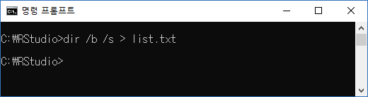 - dir, tree 뒤에 ">list.txt" 을 붙이는것은 파일로 저장하기 위함.