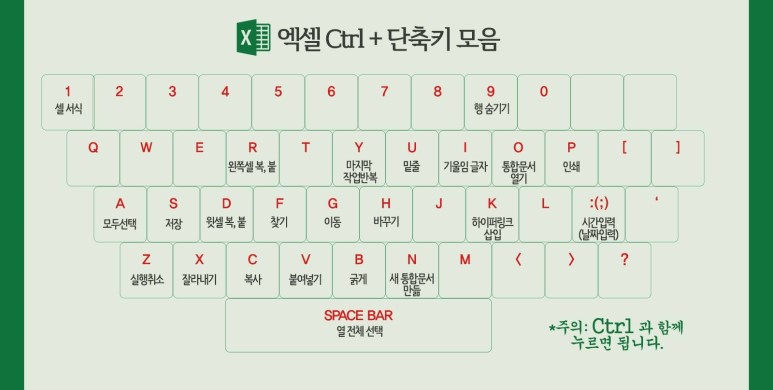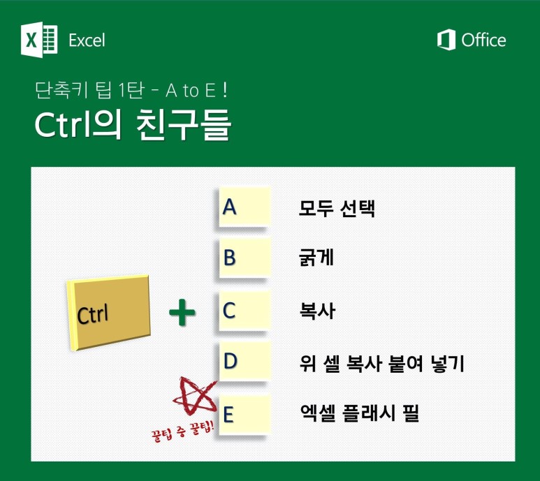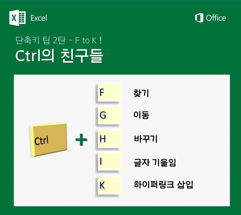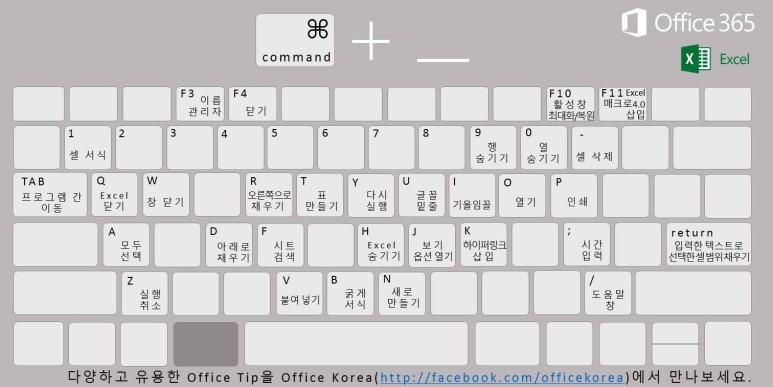 엑셀 단축키 팁입니다. 출처는 https://www.facebook.com/Officekorea/에서 가져왔습니다.