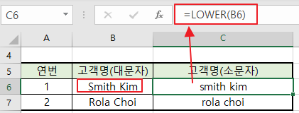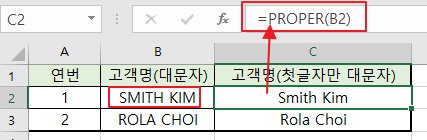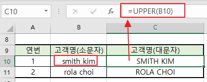 =UPPER(B2) 적용 결과 => SMITH KIM