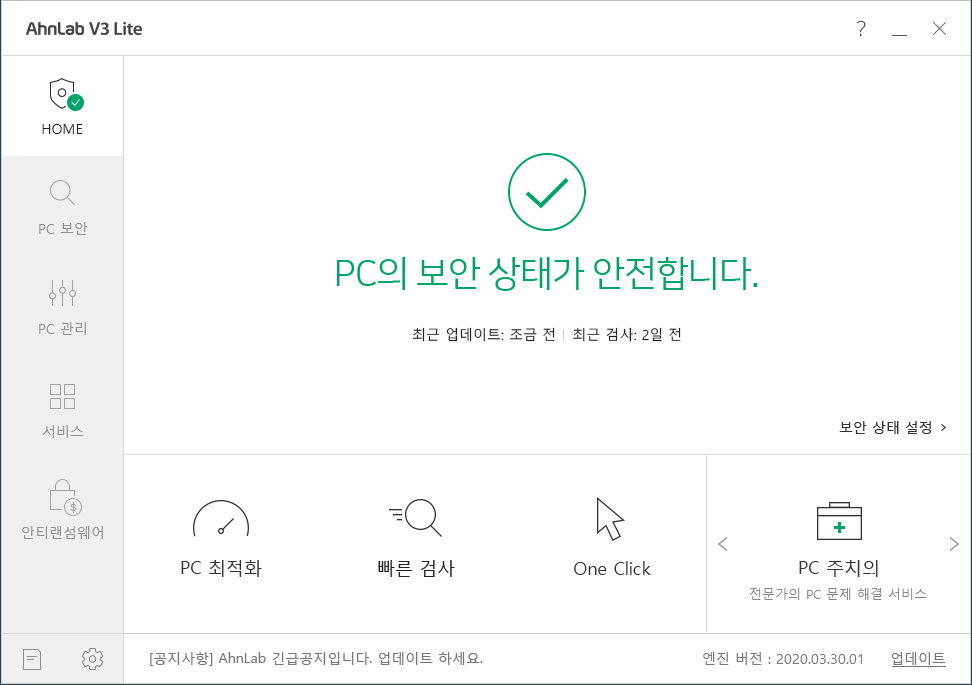- 별도의 추가 툴 설치 없이 V3 Lite 하나로 랜섬웨어 탐지 및 차단 가능