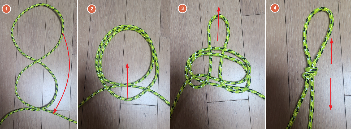 -3번은 뒤집은 모양이며, 끝에 매듭을 지워주면 완성입니다.